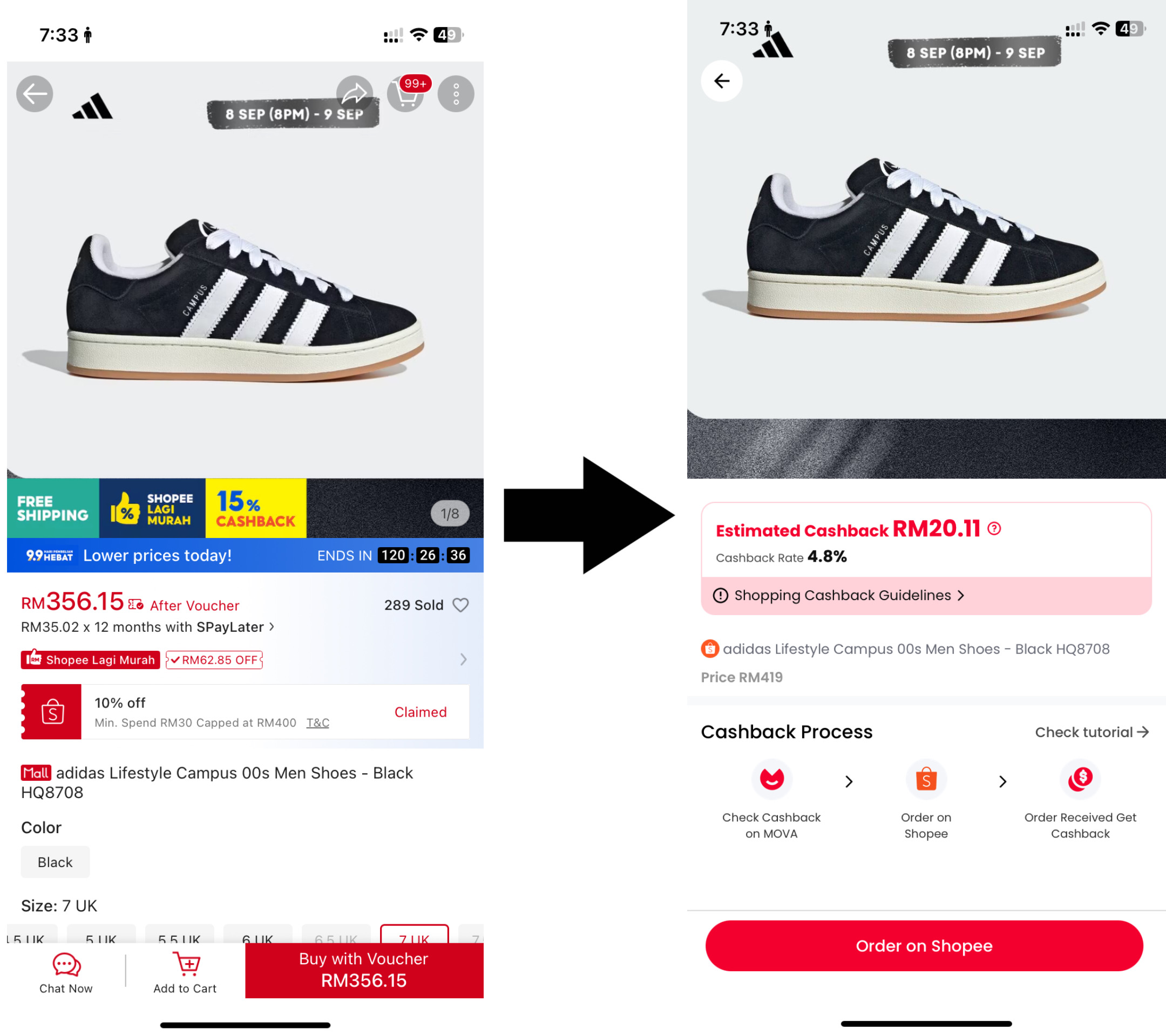 4. CASHBACK akan masuk ke akaun MOVA selepas barang diterima oleh pembeli.
